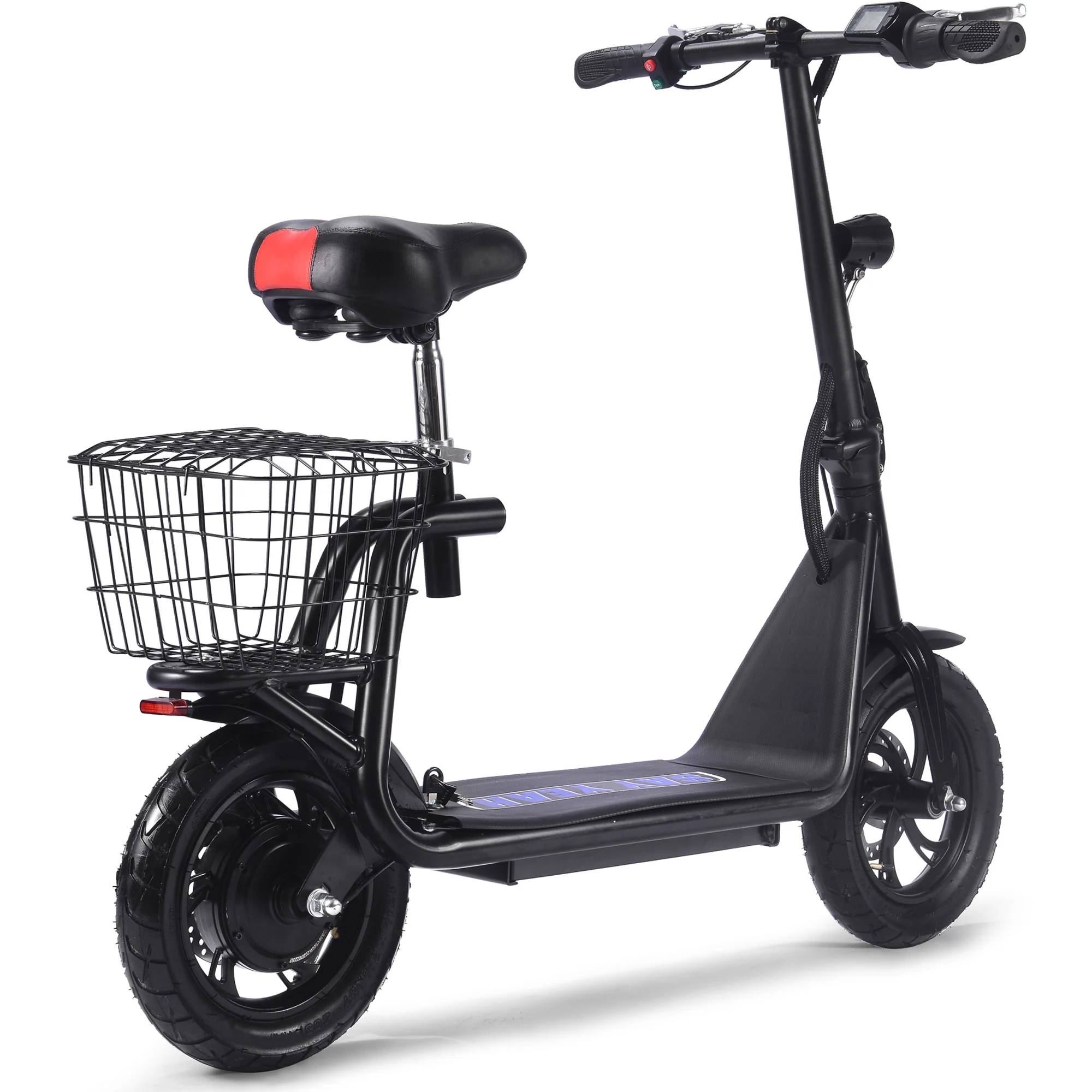 Introducing the MotoTec Metro 36v 500w Electric Scooter, the ultimate commuter ride. Powered by a 36 volt 12ah Lithium Battery pack and a 500 watt brushless motor. Comes standard with large 12 inch pneumatic tires, foldable handlebars, LED headlight & taillight, front and rear disk brakes with carrying rack.